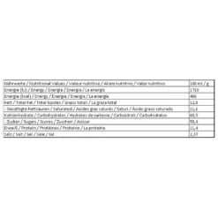 | durchschnittliche Nährwertangaben | 1574kj/372kcal |