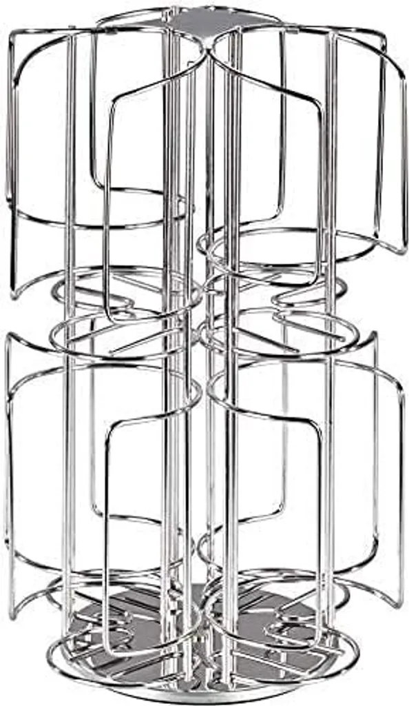 James Premium Designinhaber geschütztes Design Patentamt München Kapselhalter für Bosch Tassimo Original Tassimo Bosch-Kapselspender Halterung für 48 T-Discs Drehbarer Sockel Aus Edelstahl und verchromtem Metall.