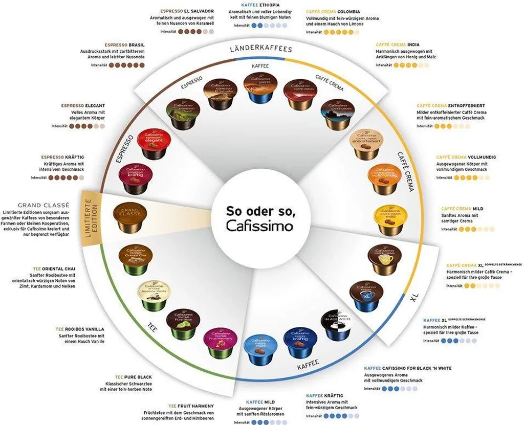 Mit Cafissimo erleben Sie erlesene Kaffees aus einzigartigen Kaffeeanbaugebieten. Für jede unserer Aromakapseln verwenden wir beste Tchibo Arabica-Bohnen, die in den sonnigen Anbauregionen langsam reifen.